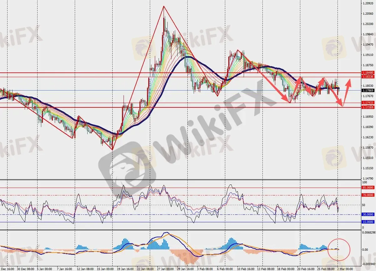 第一阻力位:1.1840 第一支撑位:1.1730