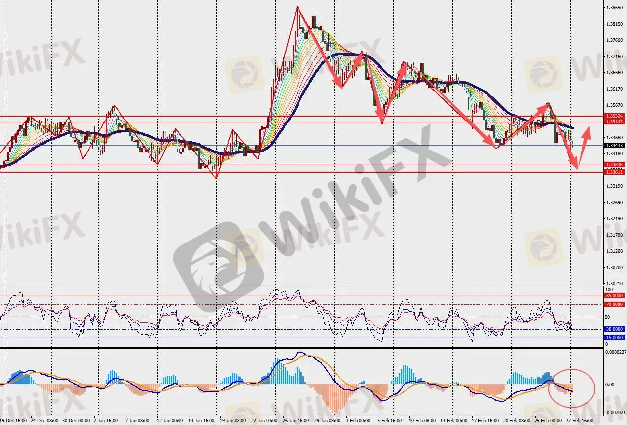 第一阻力位:1.3500 第一支撑位:1.3390