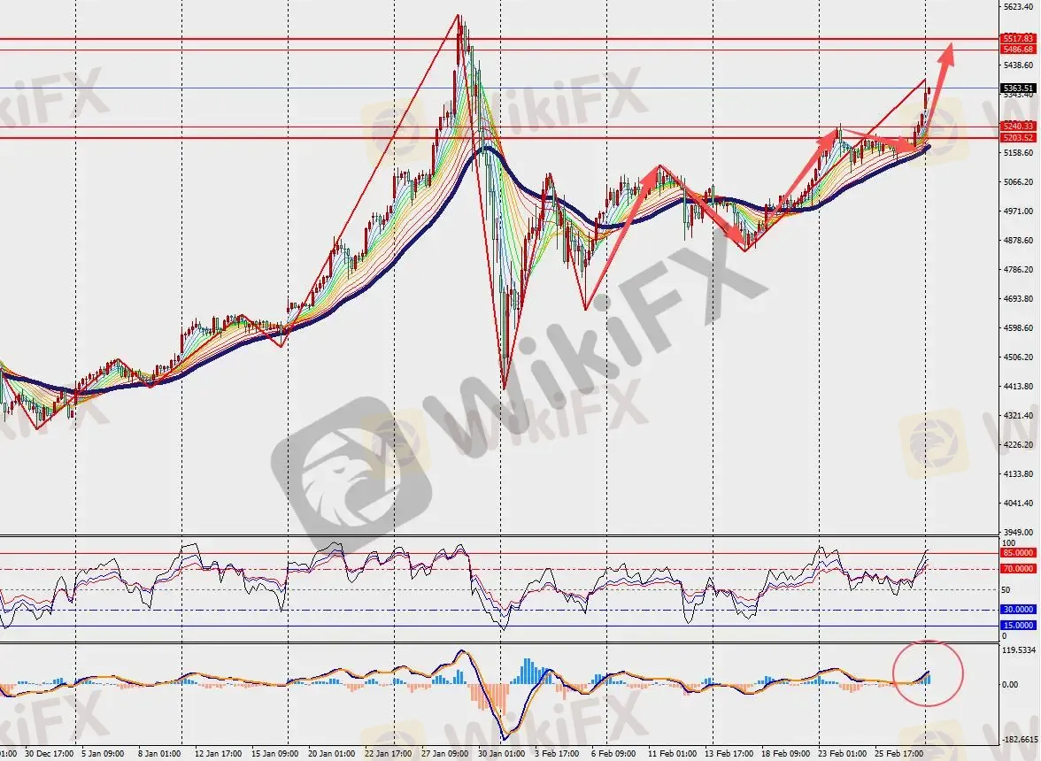 第二阻力位:5400.00 第二支撑位:5327.00