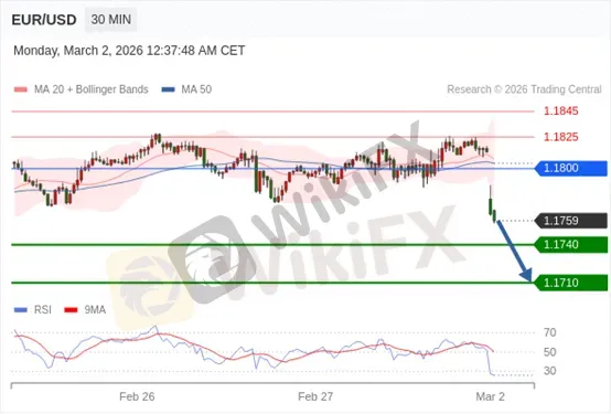 交易策略: 在 1.1800 之下,看跌,目标价位为 1.1740 ,然后为 1.1710。
