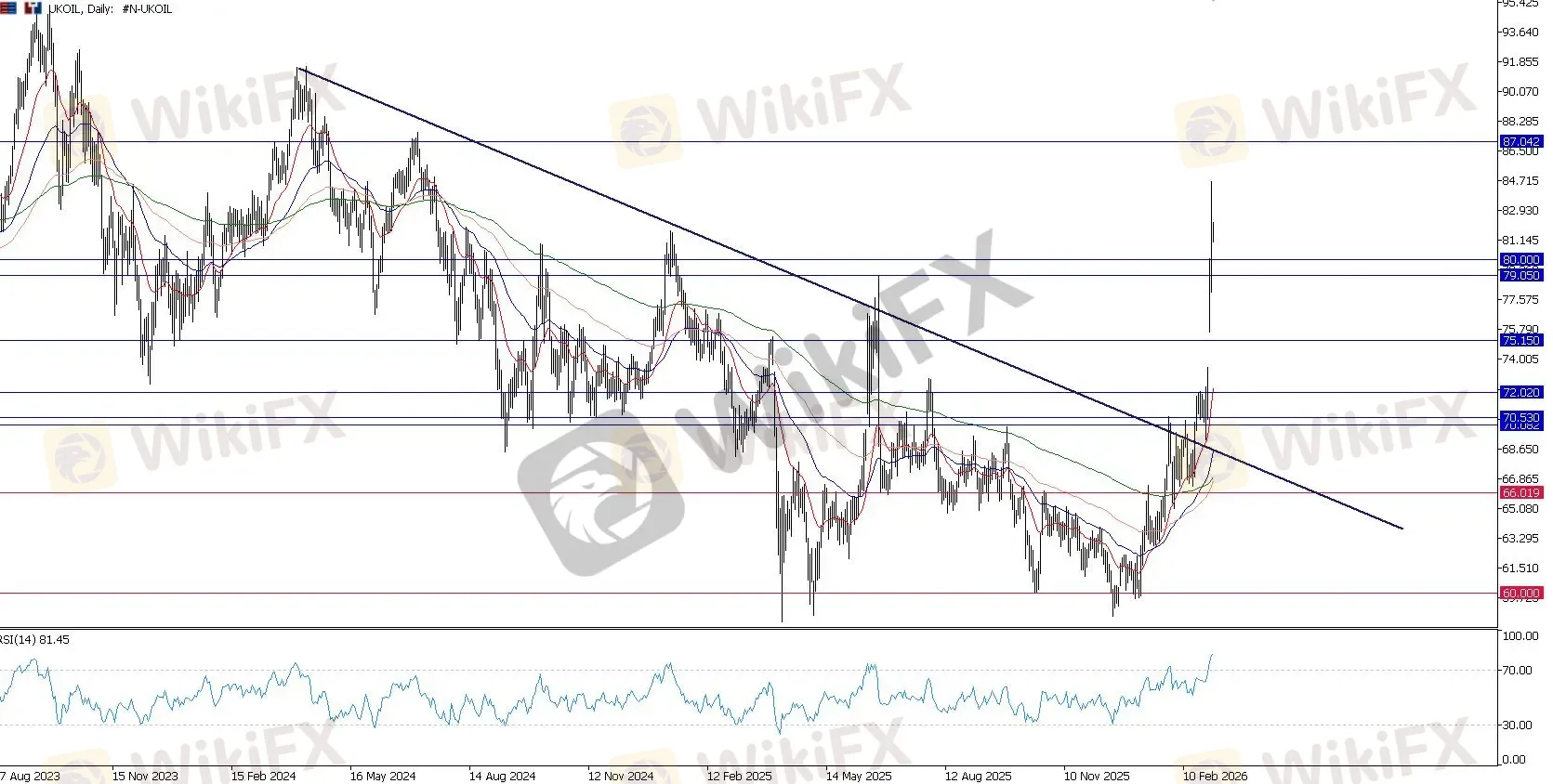 随着突破这一关键技术和心理关口,80.00 关口现在充当即时支撑底。只要霍尔木兹海峡的通行受到威胁,油价就很可能保持坚挺。