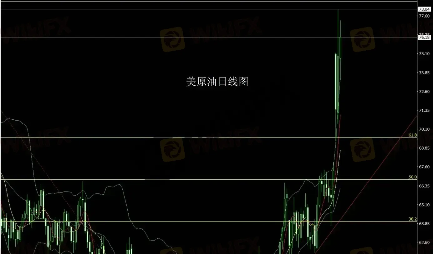 美原油昨日走势相对震荡。价格开盘于74.76后快速拉升至77.31,但随后出现明显回调,盘中最低触及73.3。尾盘阶段多头重新发力,最终日线收于76.18。