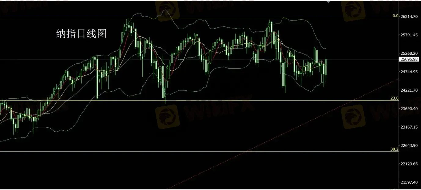 美股方面,纳斯达克指数昨日开盘于24657.67后先行回落至24459.83,但随后多头力量迅速增强,指数强势反弹并一度触及25180.67。尾盘小幅整理,日线最终收于25095.98。