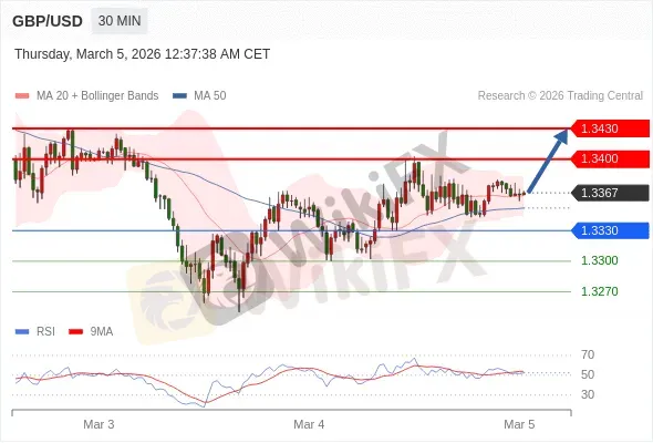 交易策略: 在 1.3330 之上,看涨,目标价位为 1.3400 ,然后为 1.3430。