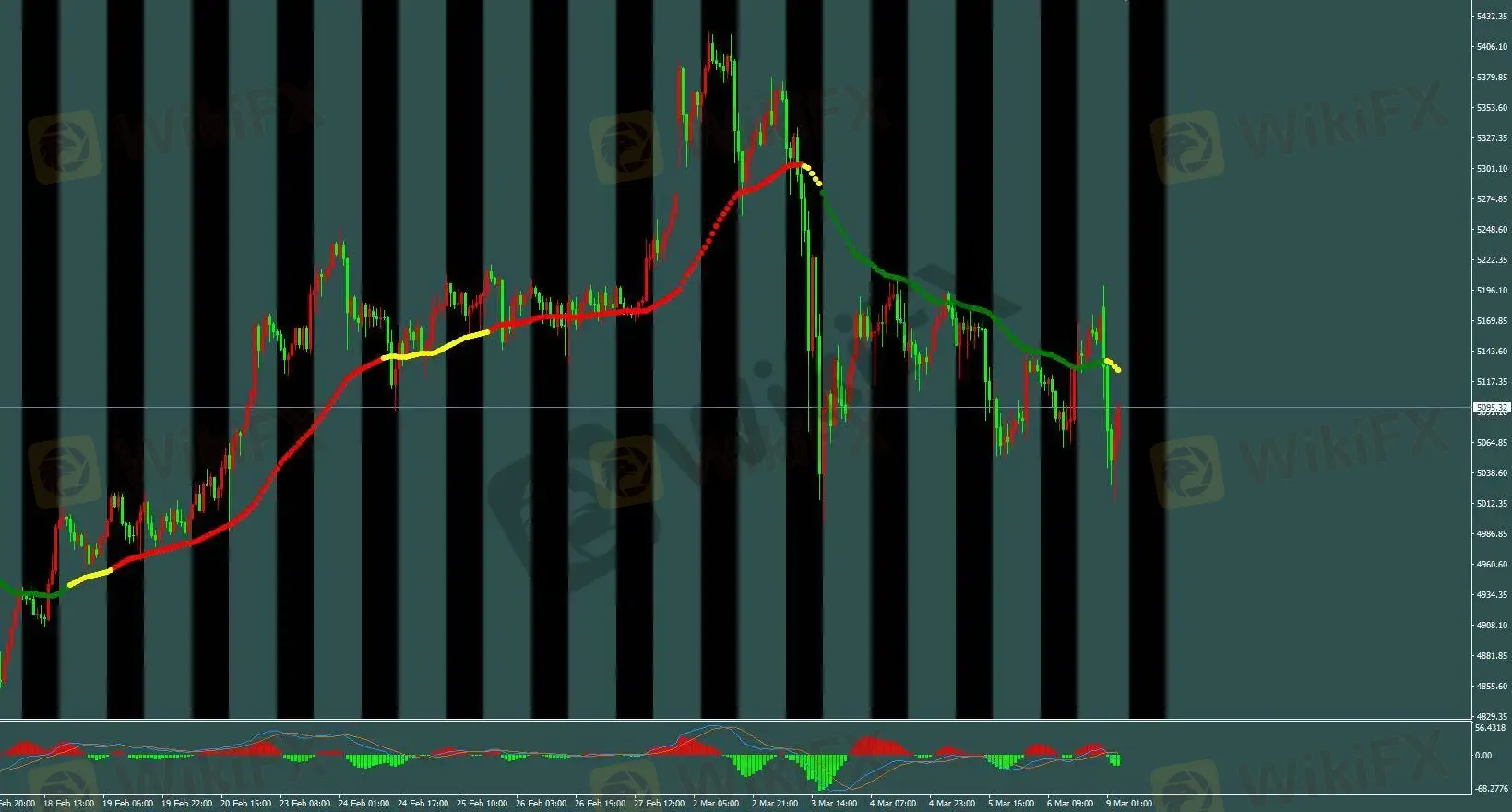 目前 H1 三色线由绿转黄。此前 H1 标准空单已在 5205 附近入场并盈利出场。今日日内交易建议结合 M5 基础模型进行操作,捕捉短线机会。
