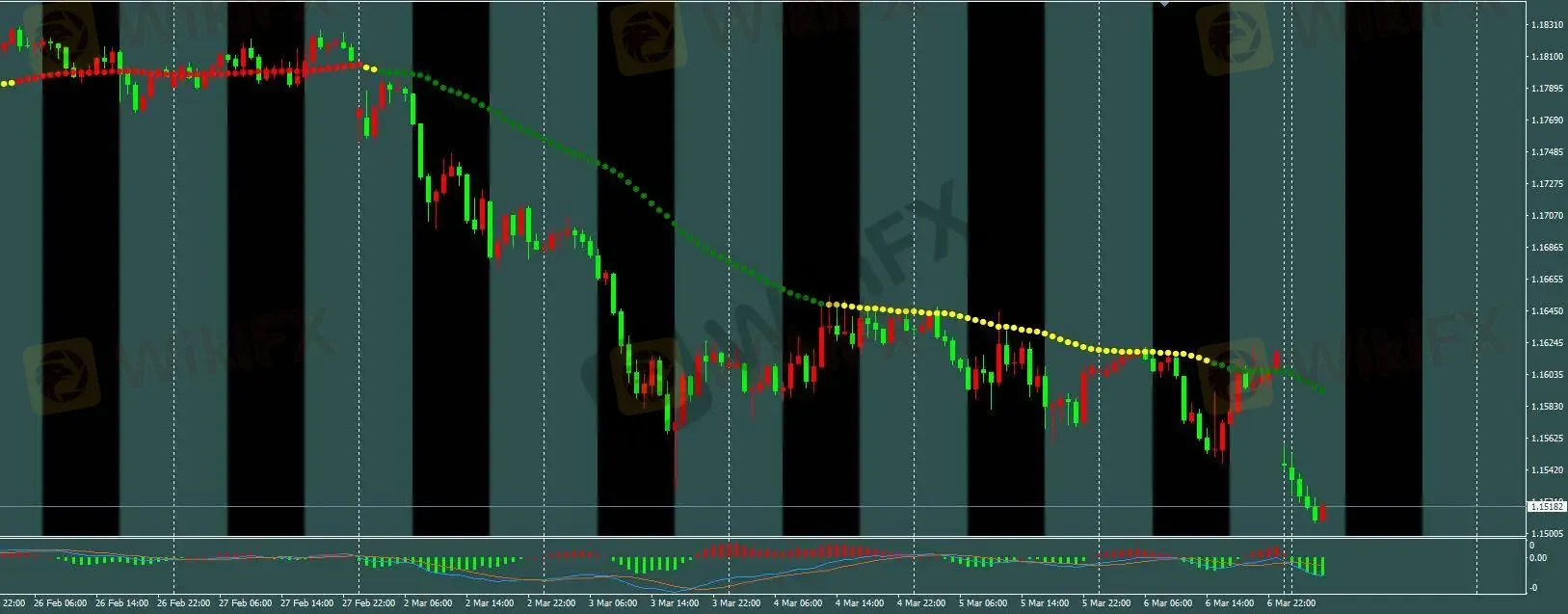H1 三色线当前由黄转绿,H1 趋势空头确立。前期 H1 标准空单已在 1.1794 附近达成盈利目标。今日日内短线可参考 M5 综合运用模型进行操作。