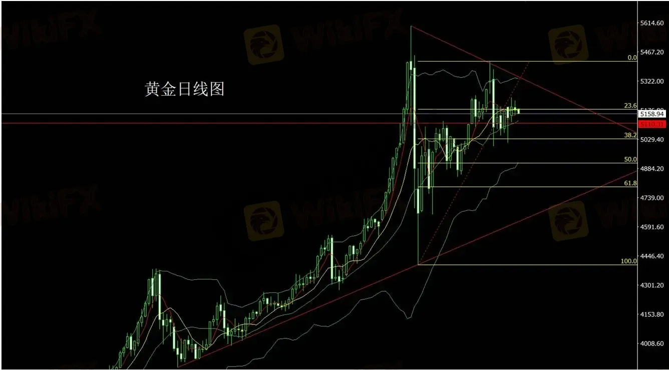 摘要:昨日市场整体呈现震荡整理格局。在宏观数据符合预期、地缘局势短暂缓和的背景下,多数资产在高位附近出现反复波动,市场情绪进入阶段性观望。黄金走势观察黄金昨日开盘约在 5190 附近,盘中一度上探 5223,随后出现回落,最低触及 5154 一线。日线最终收于 5177 附近,形成典型的孕线纺锤形态,显示短期多空力量仍在博弈。从结构来看,价格仍处于震荡区间之中。若后续出现回踩,市场可能继续关注 5120