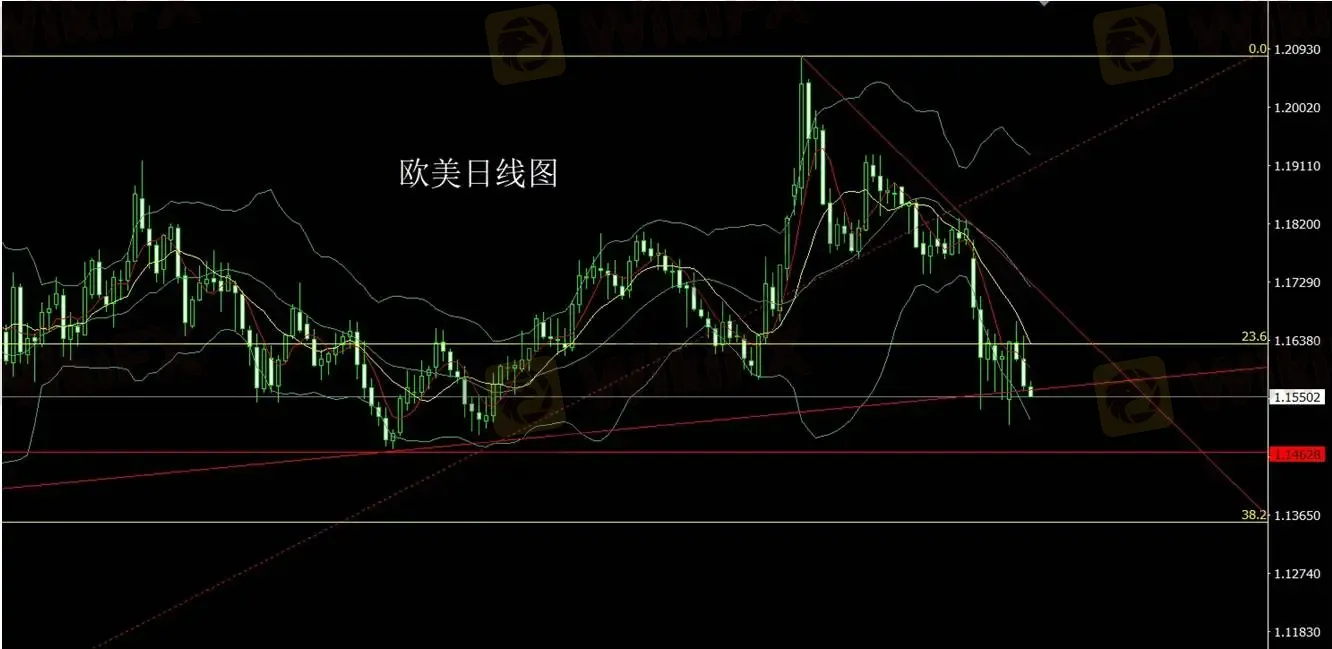 欧美昨日最高触及 1.1645,随后回落至 1.1559 一线附近,日线形成较长上影线的阴线形态,显示上方压力仍较明显。短期关注 1.15 区域附近的支撑,以及 1.158—1.16 区间的反弹力度。
