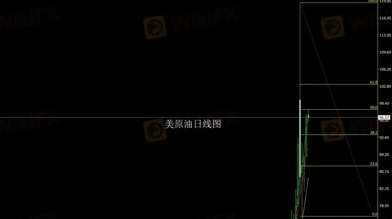 原油昨日表现最为强势。价格从 88.7 附近一路拉升,最高触及 97 上方,日线收出强势阳线。