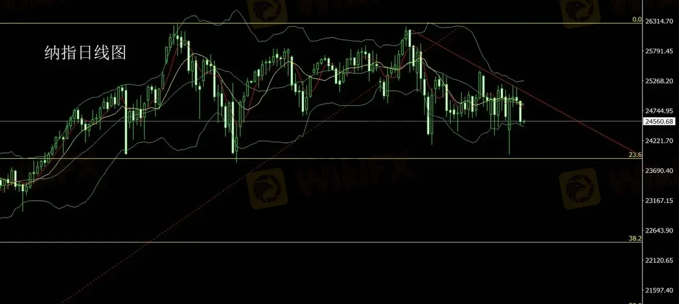 纳斯达克指数昨日在 24900 附近震荡后走弱,最低回落至 24490。