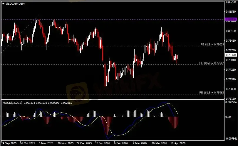 日线图显示美元兑瑞郎震荡下跌,当前承压于0.79关键阻力。从MACD来看,快慢线向下运行,红色动能柱则温和收缩。汇价走势和动能柱的变化呈分歧。