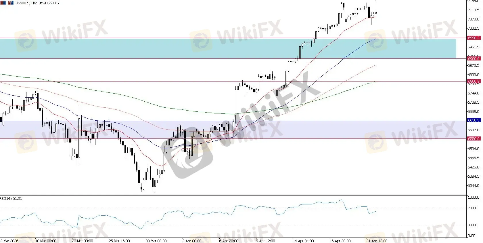· 标普 500 (US500): 在历史高点盘旋。等待向 7,000 点关口的技术性回调,看看新的结构性支撑底是否守住。