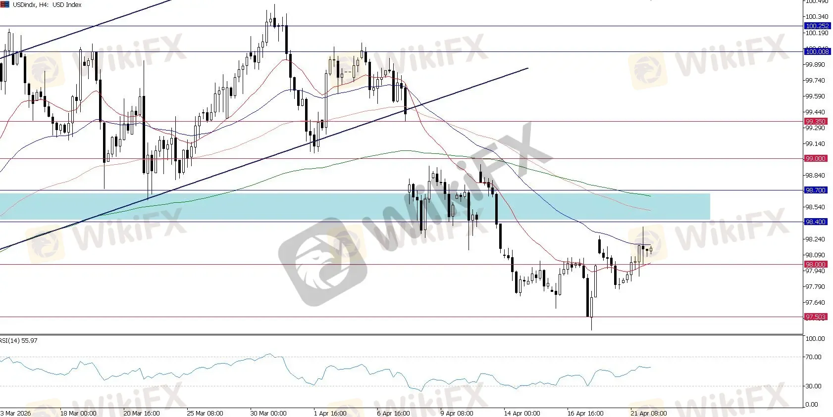 美元指数 (DXY) 昨天成功收复了关键的 98.00 枢轴水平。交易员今天必须密切关注,看看这种避险买盘能否进一步延伸。