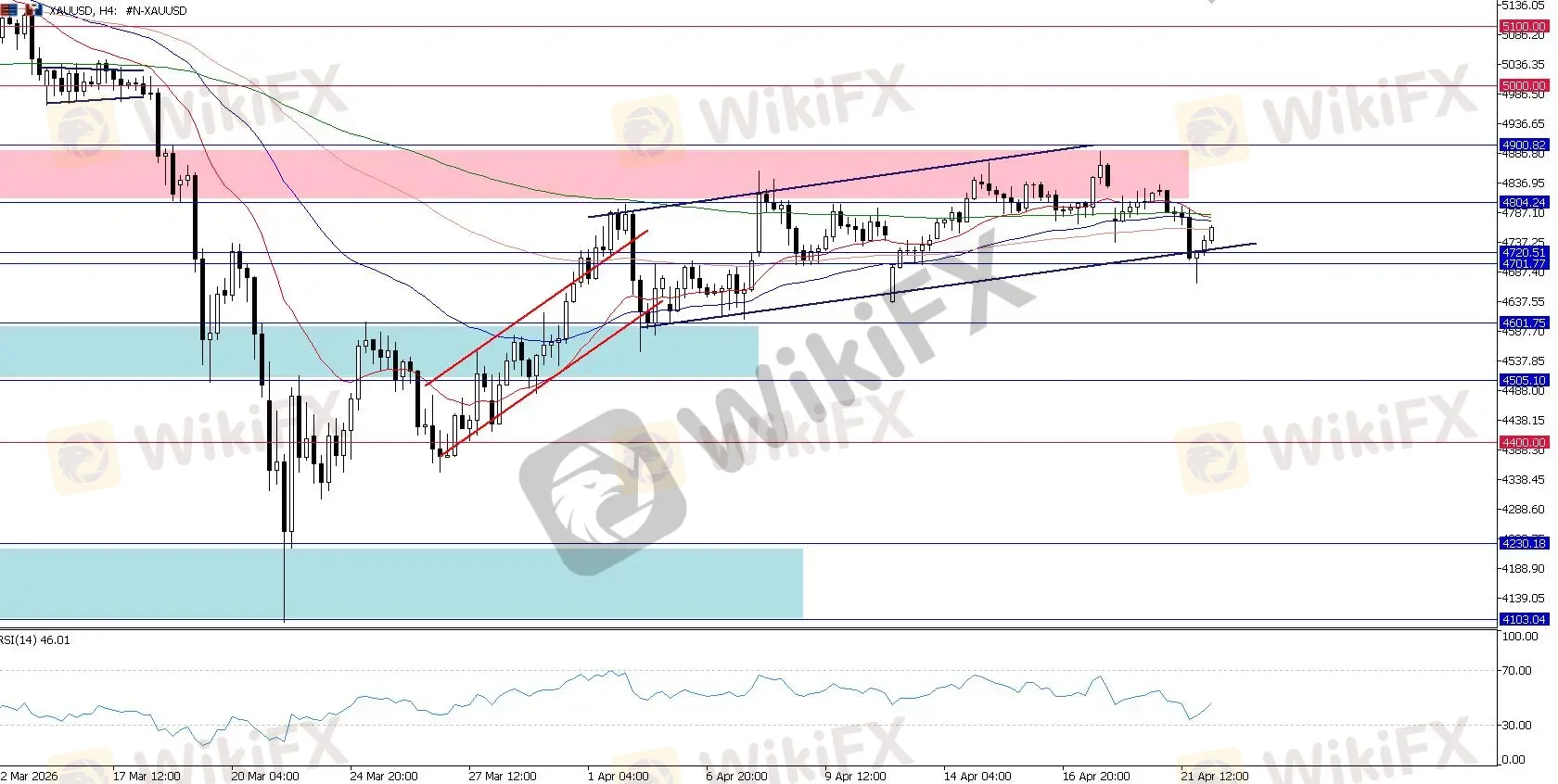 技术面上,昨天的抛售看到价格从 4,800 美元的阻力天花板滑落,以重新测试 4,700 美元的支撑区。然而,只要 4,700 美元的支撑位和上升趋势通道保持稳固,更广泛的上升趋势就依然完好无损。