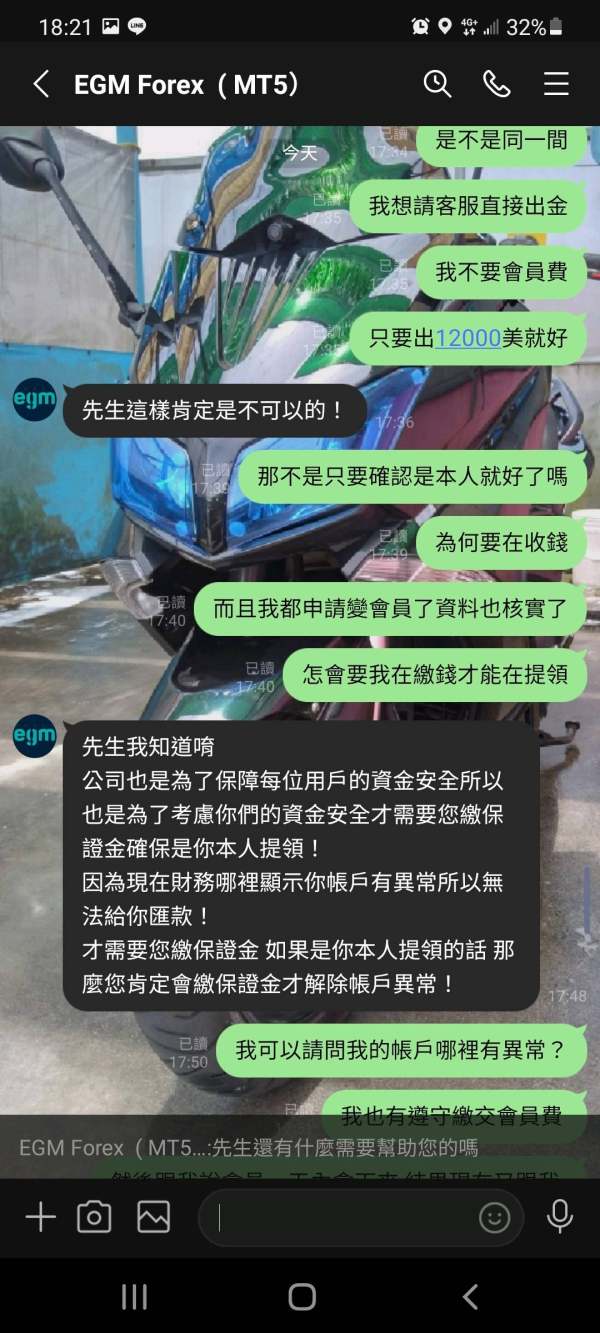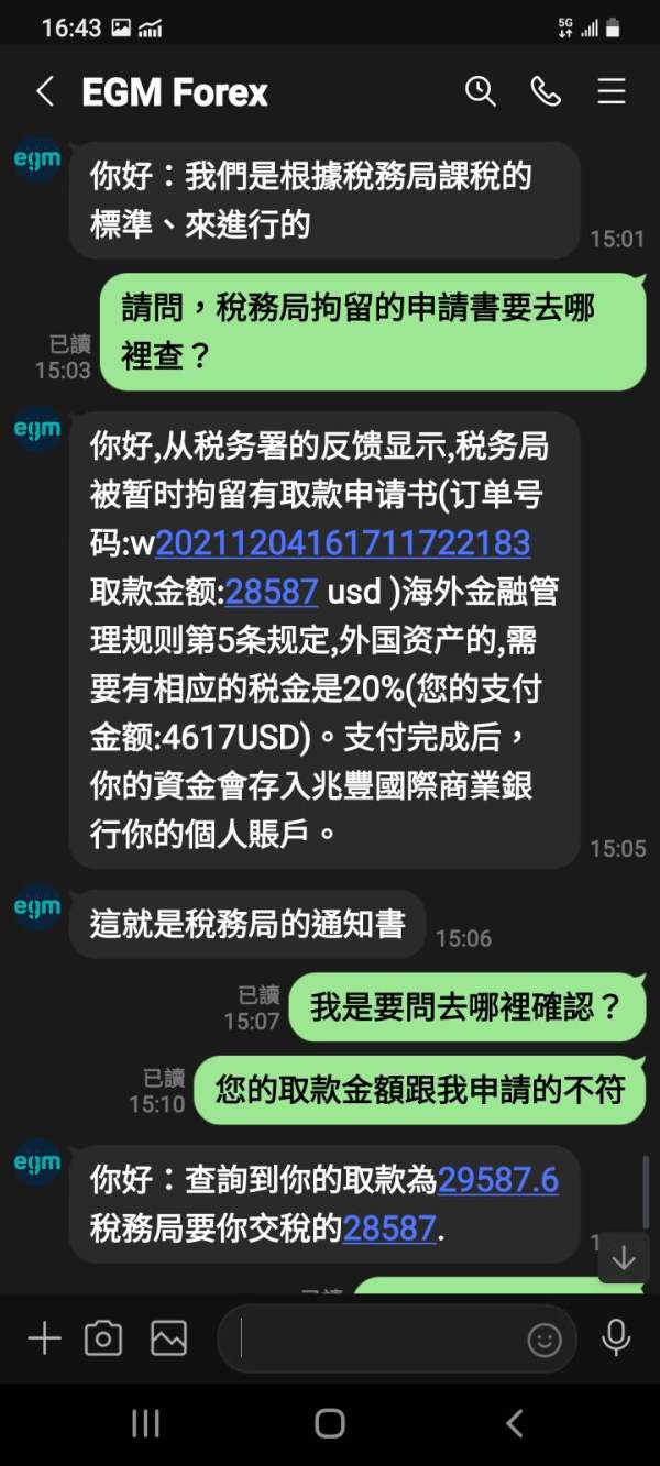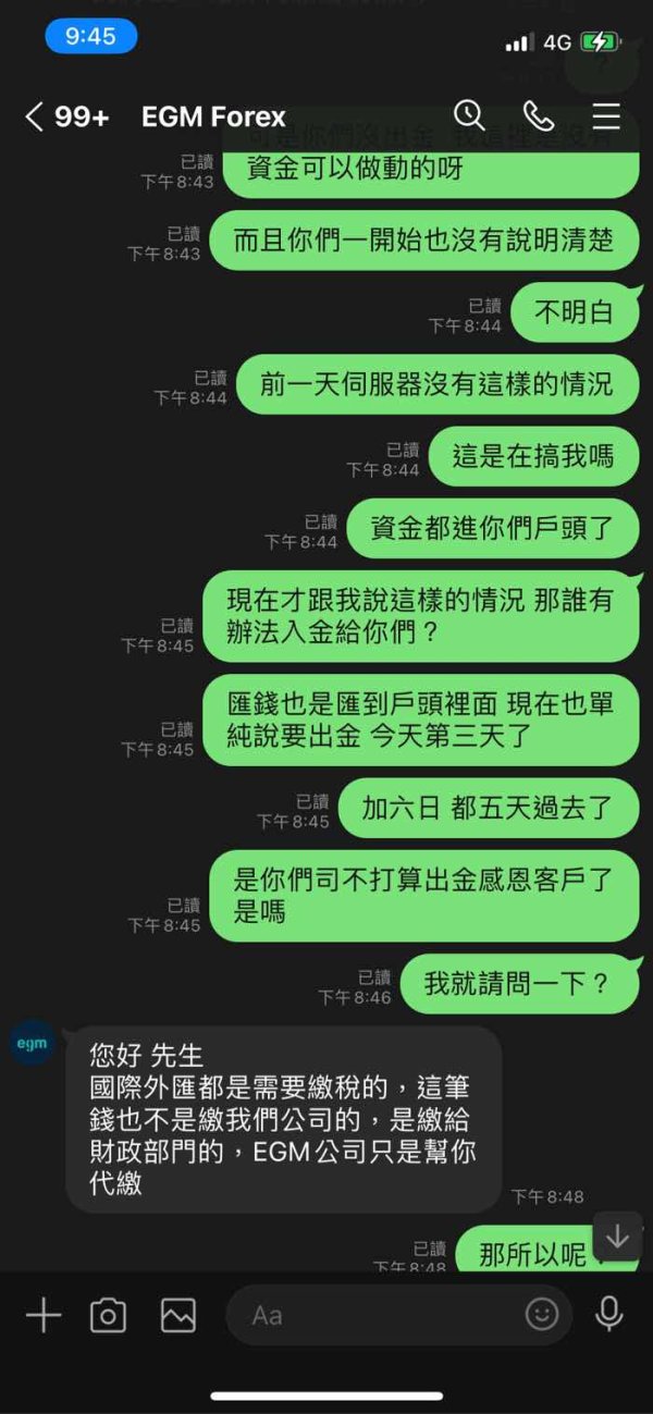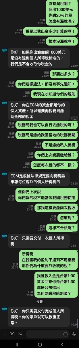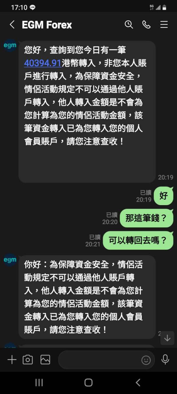 客戶(投資人)覺得放在egm forex的資金不保險還被受控制無法得到保障。