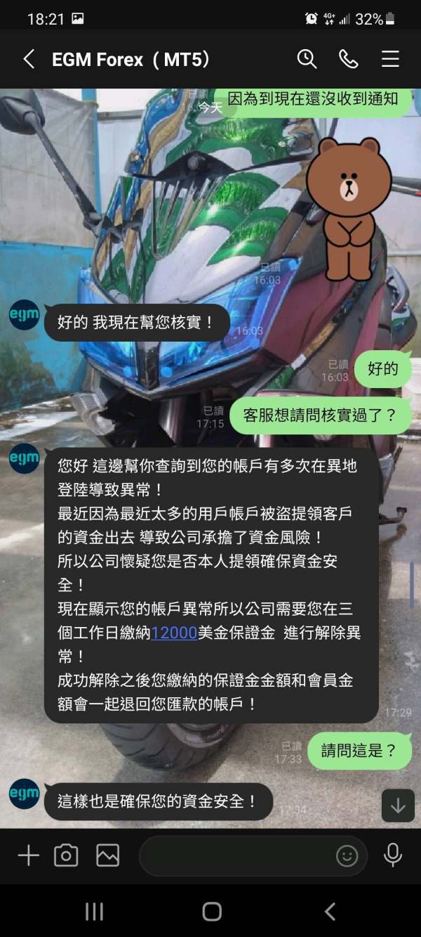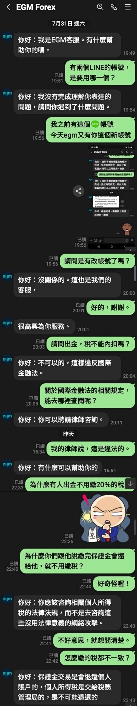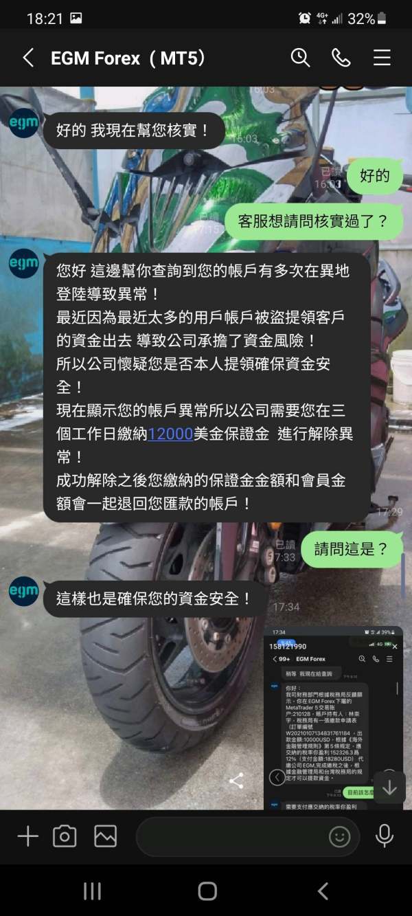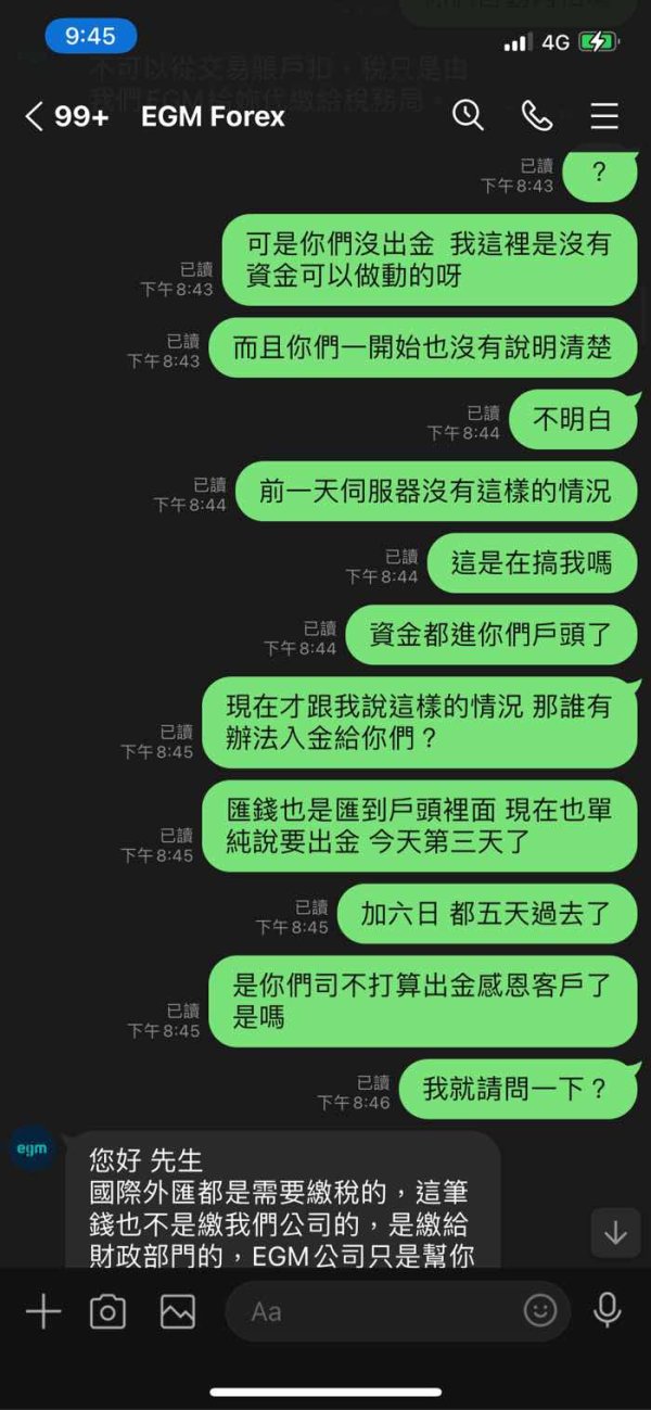 客戶(投資人)覺得放在egm forex的資金不保險還被受控制無法得到保障。