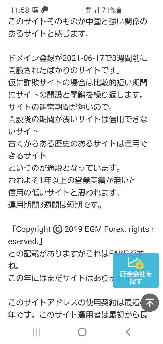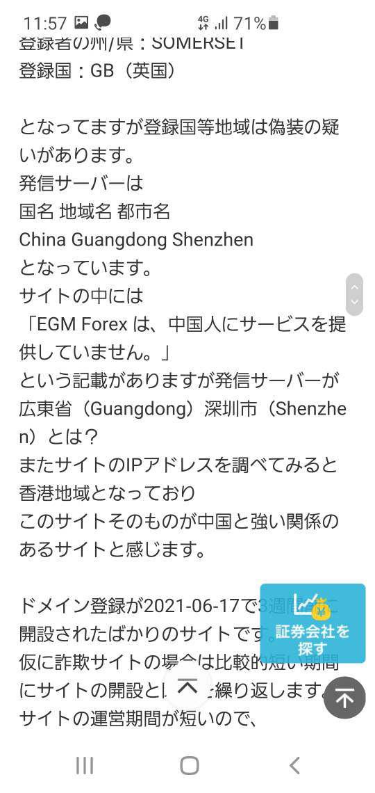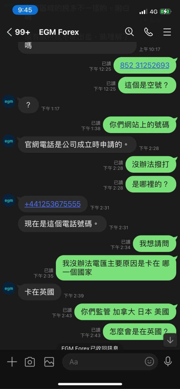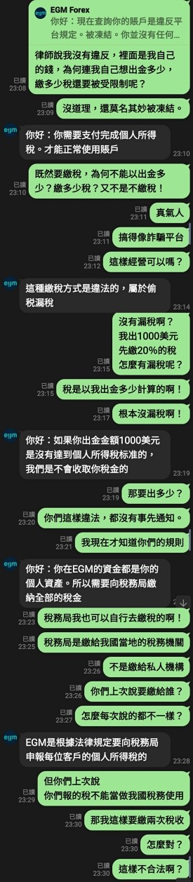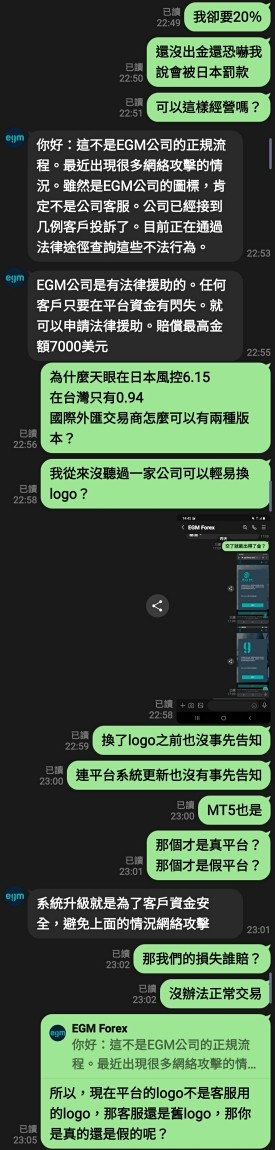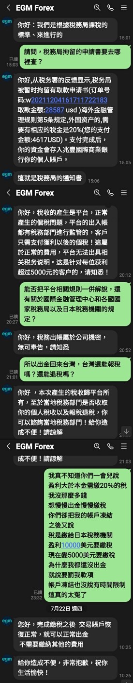 上次曝光egm forex有回覆要截圖發訊到公司郵箱,結果網路無法登錄,連egm forex公司郵箱也很難傳送出去support@egmforex.uk,查公司有在英國註冊,持加拿大金融交易及報告分析中心牌照(M21827085)跟美國數字貨幣牌照(31000187499253)牌照是確實有的,持有牌照而不做正規的交易經營,真是很枉費投資人的期許及正規交易商的經營理念。惡意凍結交易帳戶及限制投資人出金要繳個人所得稅給日本,導致投資人財富不自由及限制投資人出金自由。