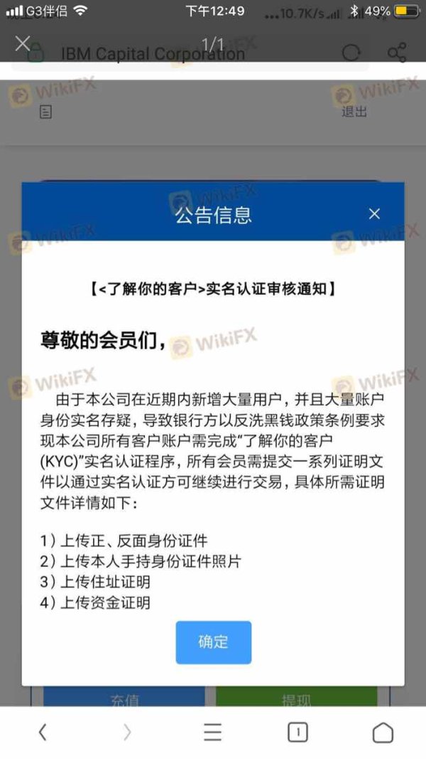 該用戶未證明是IBM Capital Corporation的交易者