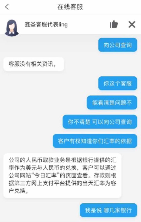 出金汇率远低于银行或者其他同行汇率,平均1w块钱出金,会比银行少拿到1000块,即使赚钱,也等于白赚了,被鑫圣平台用汇率的手段吃掉了。