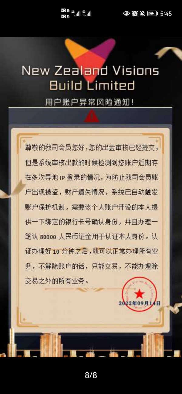 該用戶未證明是假冒New Zealand Visions Build的交易者