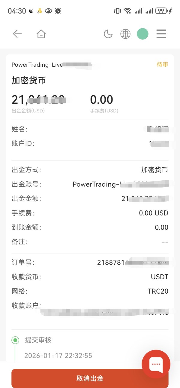 封禁账户,出金不到账。
