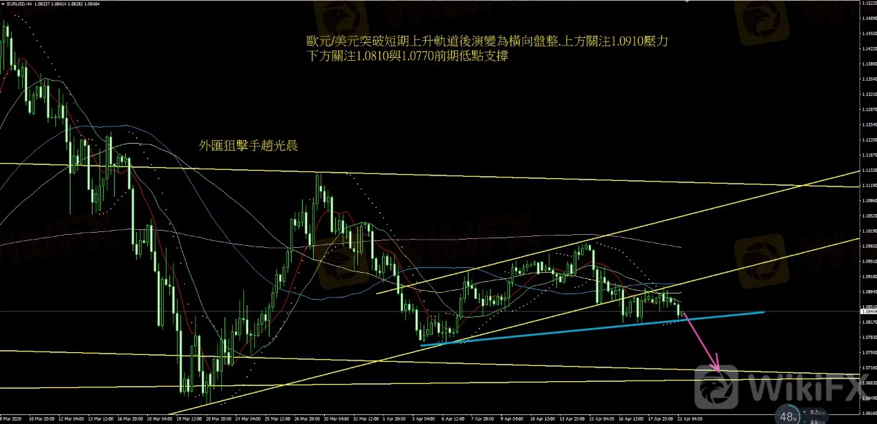 歐元/美元自上週四向下突破1.0900後一直在1.0900下方窄幅震盪.今日有機會再次向下測試下方支撐在1.0820.1.0770上方壓力關注1.0920.