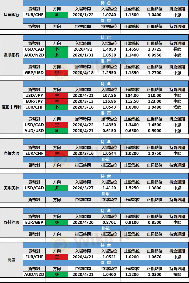 (1)道明銀行加元/日元空頭持倉提前出局。