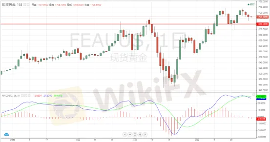 相反,若跌破並日圖收低於1700美元,那麼將敞開測試1675以及1650美元的大門。