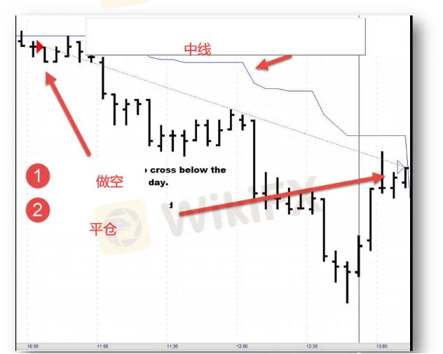 2:如果M5週期K線收盤穿越並低於中線,我們做空