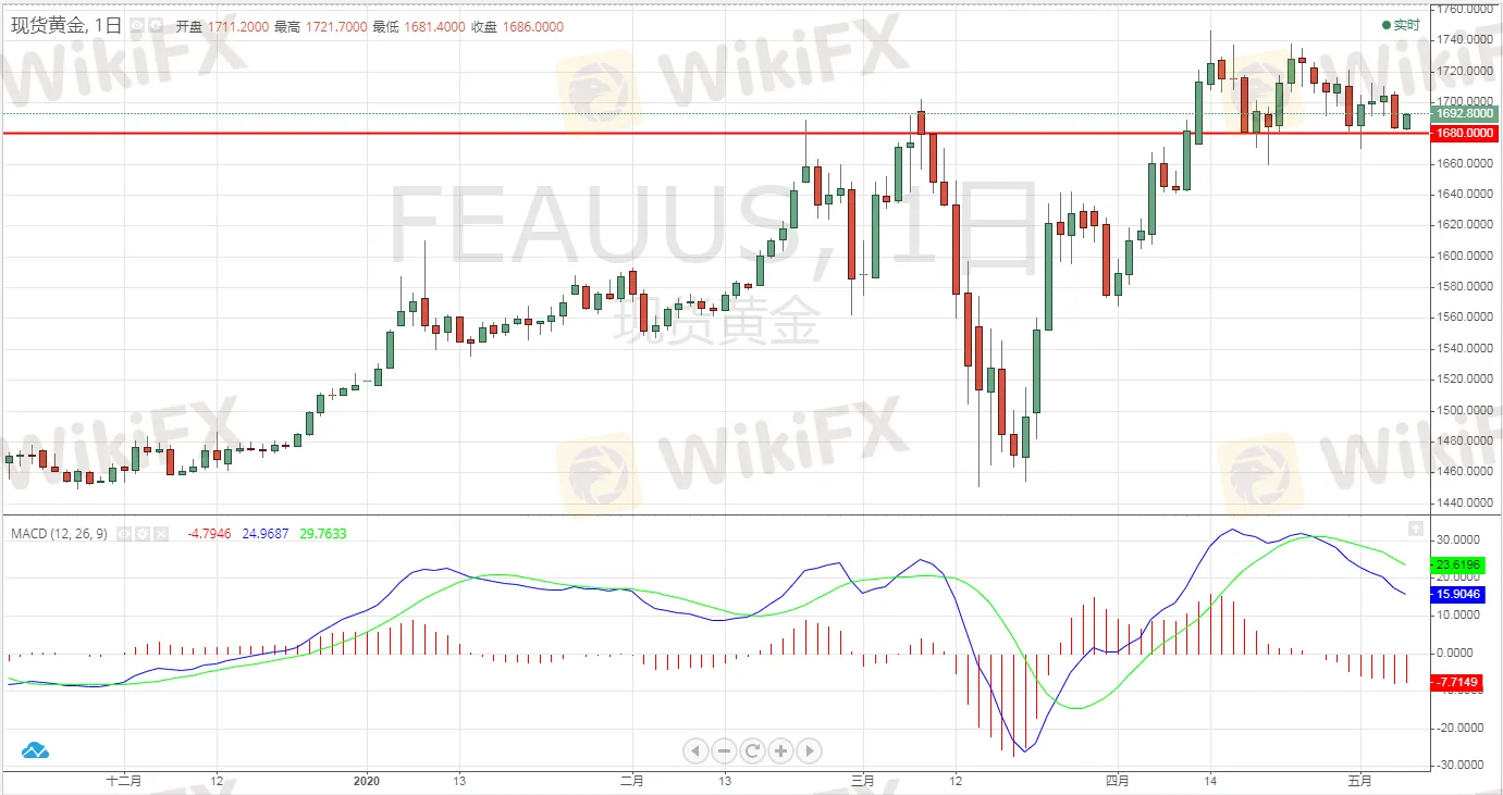 3.Oanda資深市場分析師Edward Moya表示,“金價無法擺脫重開動能。美國一些州正在放鬆為防止冠狀病毒大流行而採取的措施。儘管預期下個月新冠肺炎死亡病例可能升至每日3000人,但投資者仍持樂觀態度,因新病例並未激增。”“然而,這種病毒需要更長的時間才能深入農村地區,”他說。在這種背景下,“金價可能會繼續盤整,直到美國其他地區的病例飆升,或零星的經濟反彈令人失望。”Moya表示,金價短期內應會從1650美元水準獲得強勁支撐,未來幾個月仍應以1800美元為目標。