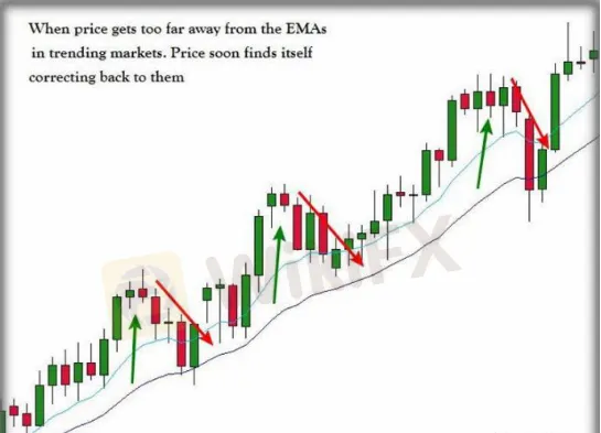 摘要:市場永遠是動態的。運用參數為10和20日兩條均線(EMA)可以看作為動態的支撐阻力位。均線對價格有磁吸作用,某些時候價格會突然遠離均線,但由於磁吸作用,最終均線會令價格回調修正。