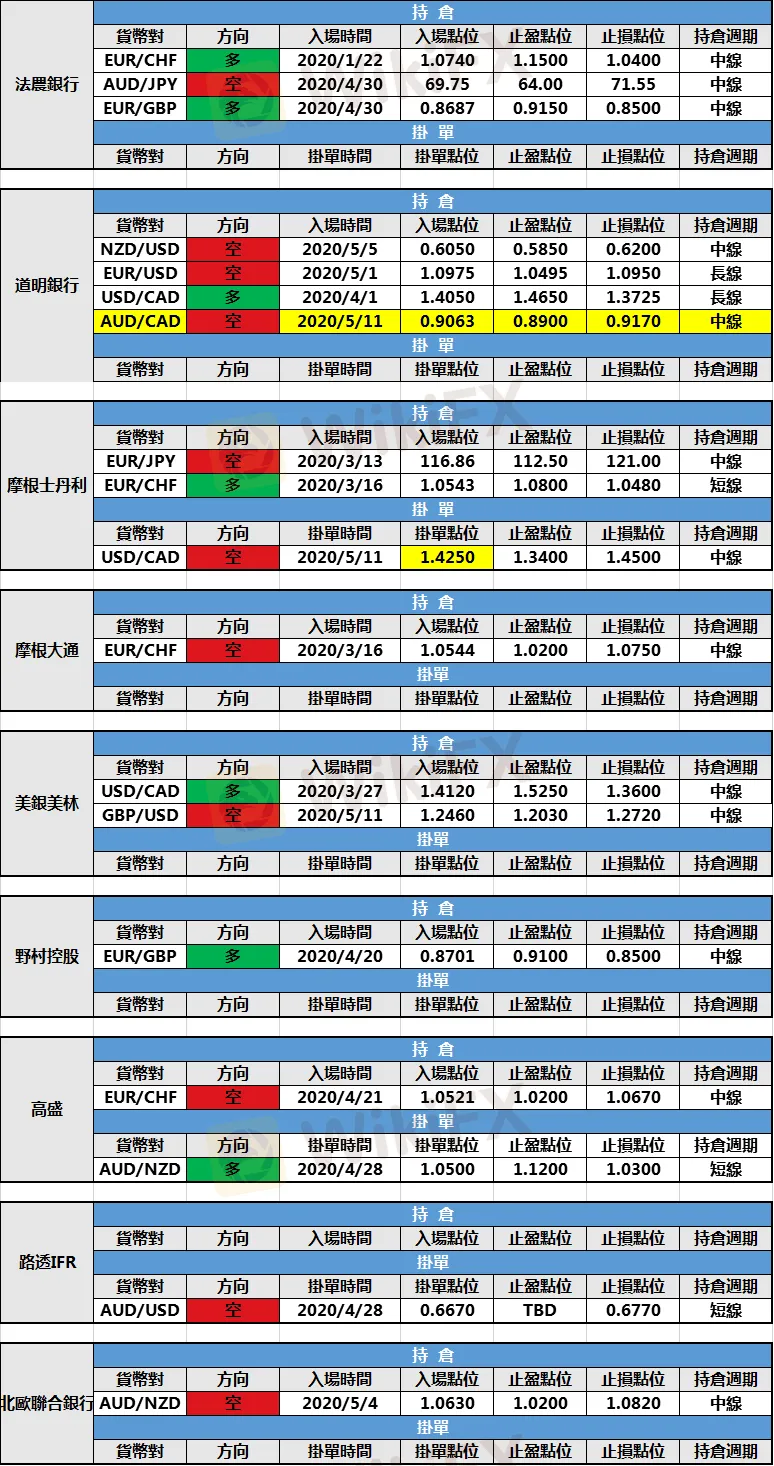 (1)道明銀行新增澳元/加元空頭持倉,入場點位0.9063,止盈點位0.8900,止損點位0.9170。