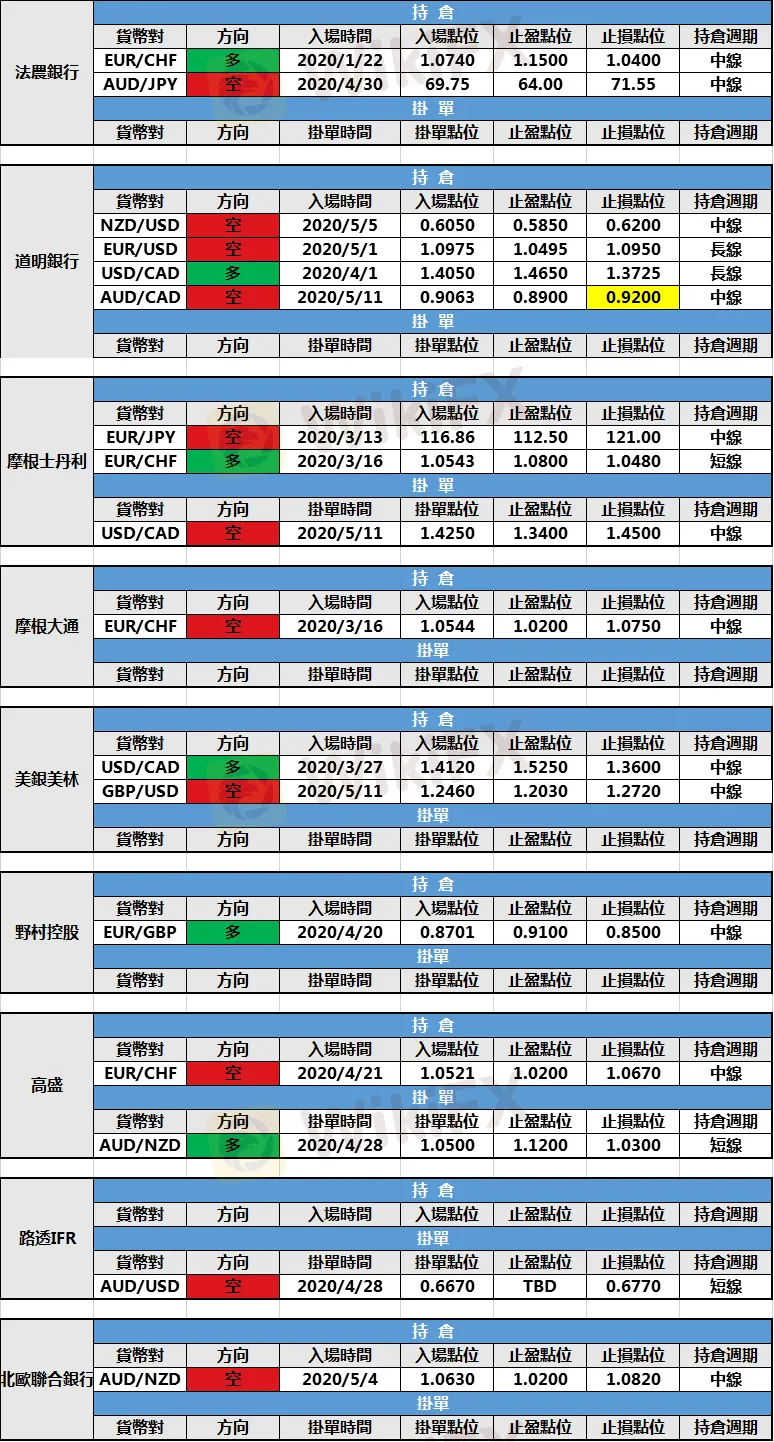 (1)投行掛單未變,摩根士丹利的美元/加元空頭掛單;高盛澳元/紐元多頭掛單以及路透IFR澳元/美元空頭掛單暫未成交。