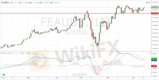 金價當日漲幅一度上漲高達0.9%,但在鮑威爾拒絕了將負利率作為刺 激工具的想法之後,金價回吐部分漲幅。