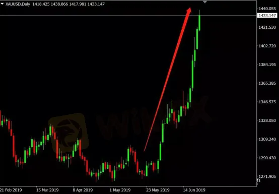 就比如6月份的黃金,從5月30日的1275美元一口氣漲到了今天(6月25日)的1439美元,甚至連日內回調都沒有,頭也不回地刷新6年以來高點。多少黃金空頭被碾壓的體無完膚,甚至爆倉出局!這就是市場的趨勢,順勢而為,隨趨勢交易。