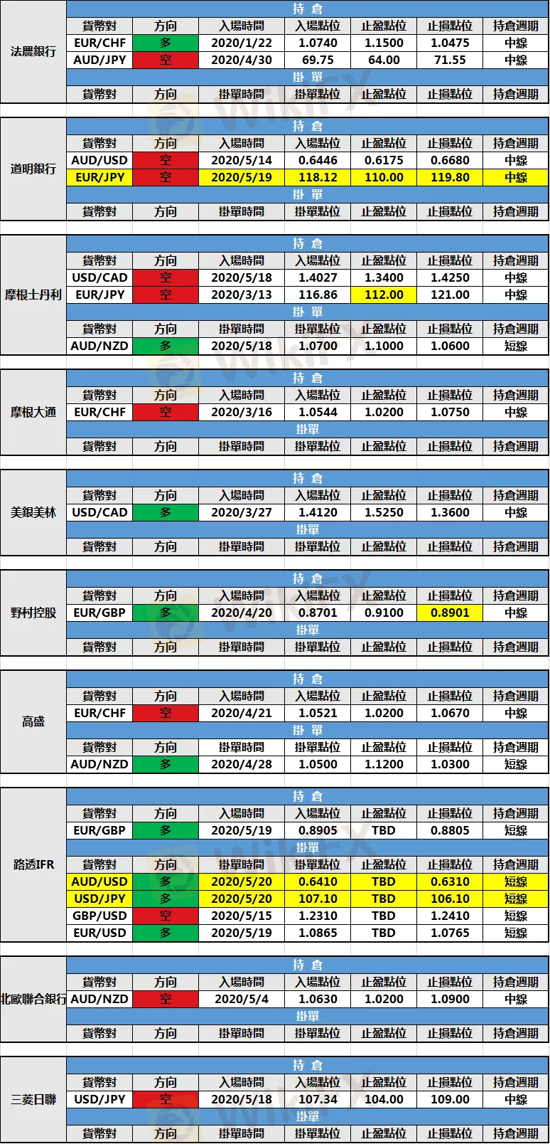(3)摩根士丹利修改歐元/日元空頭持倉止盈點位至112.00。