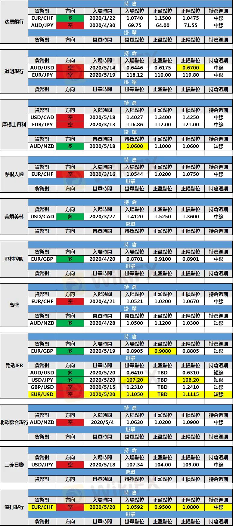 (1)道明銀行修改澳元/美元多頭持倉止損至0.6700。