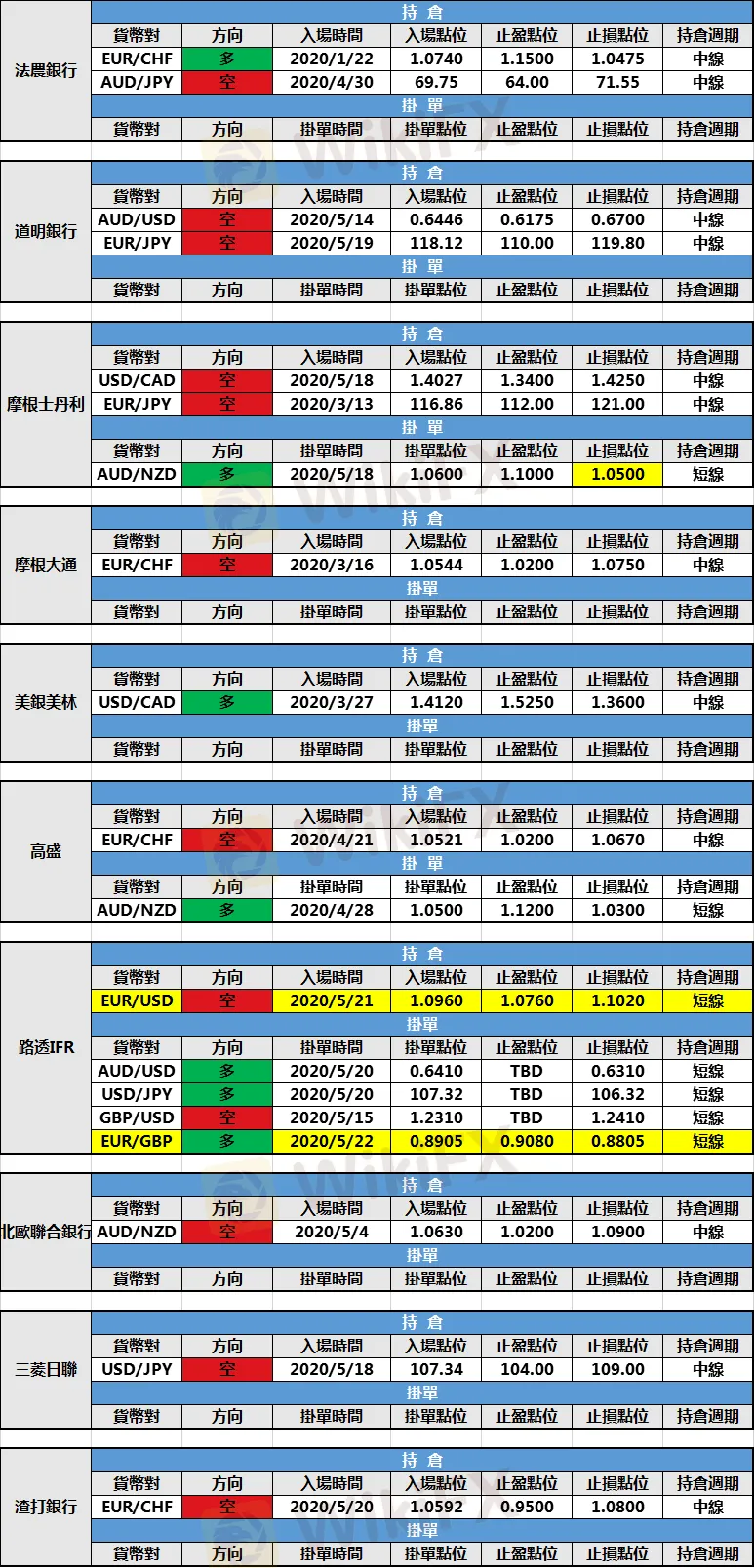 (1)摩根士丹利修改澳元/紐元多頭掛單止損點位至1.0500。