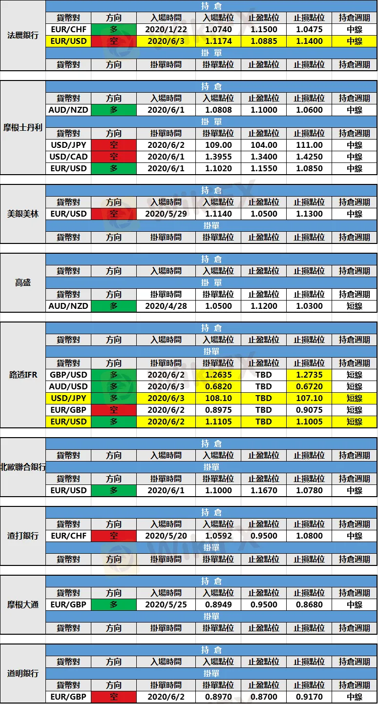 美元指數暴跌,非美貨幣飆漲,路透IFR掛單全線調整,法農銀行歐元/澳元多頭持倉出局,新增歐元/美元空頭持倉。