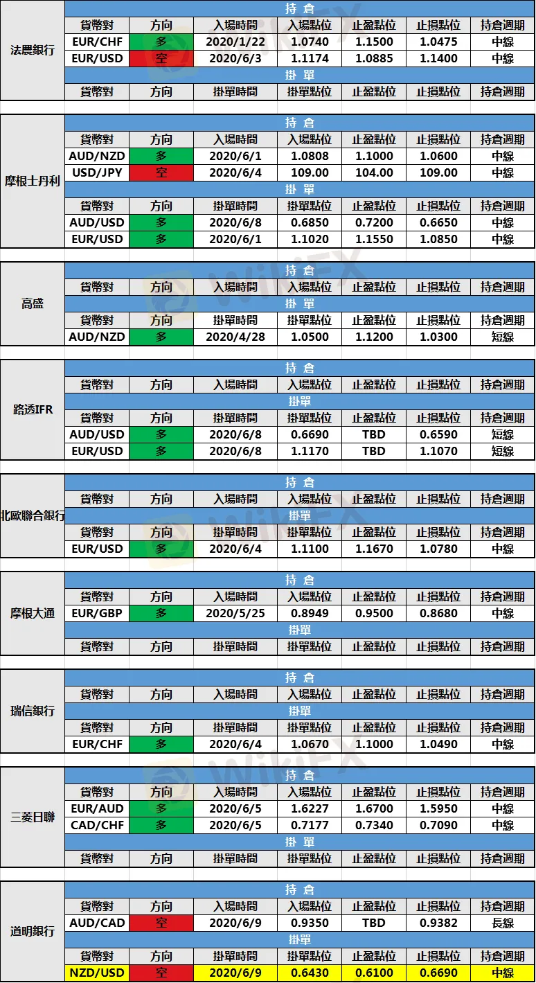 外匯天眼0727投行持倉報告:三菱日聯新增持倉 大摩和路透新建掛單