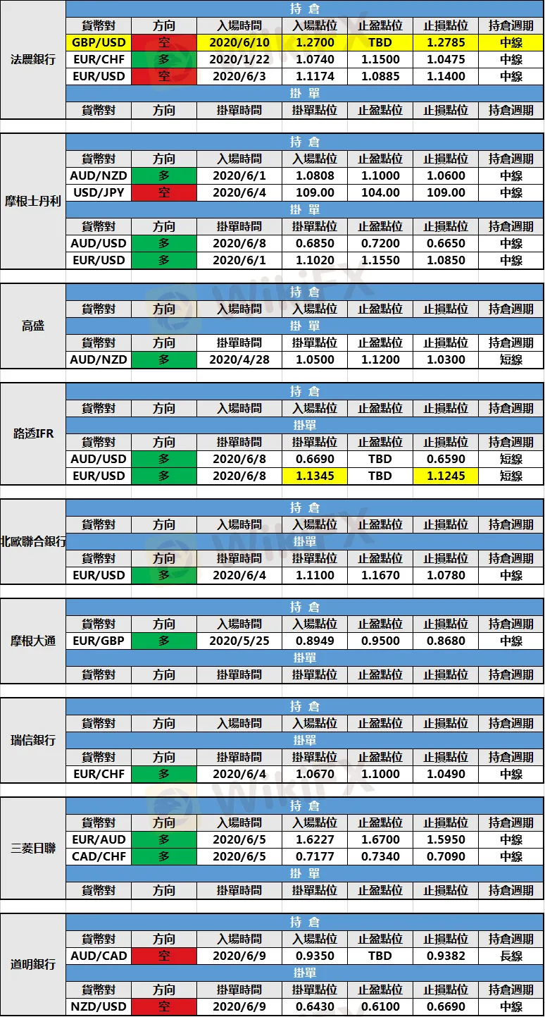 外匯天眼0727投行持倉報告:三菱日聯新增持倉 大摩和路透新建掛單