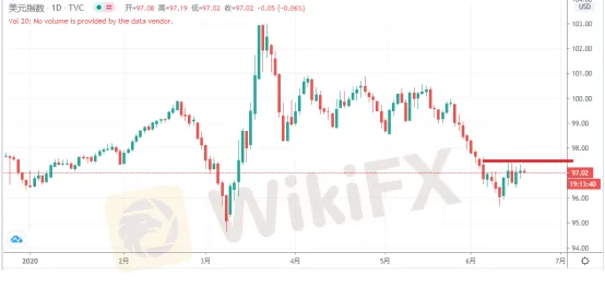 週四(6月18日)亞洲時段,美元指數震盪下跌,現交投於97.02一線。