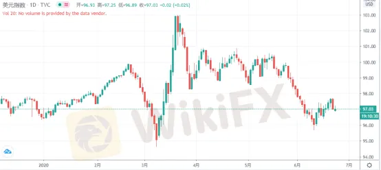 週二(6月23日)亞洲時段,美元指數出現寬幅震盪走勢,現交投於97.03一線。