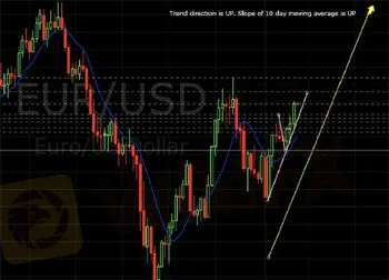 跟隨趨勢進行交易總是有幫助的,至少如果你是新手交易者的話。為了發現趨勢,設置周線圖和日線圖,添加趨勢線、斐波那契水準和移動均線。可以說,這些是你們的“界限”,將代表支撐位和阻力位。如果圖表顯示趨勢傾向於上行(價格從圖表的左下方向右上方傾斜),那麼你應在所有可能達到的支撐位買入。