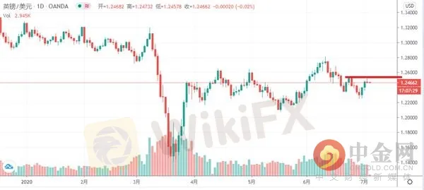 技術上看:英鎊兌美元昨日沖高受壓1.2530附近後回落,日線收出一根帶長上影線的陰線,收於均線帶附近,短線結構重心有下移趨向。歐盟與英國之間仍然存在較大分歧。在7月份繼續談判中,歐洲已經發出最終可能無法達成協議做準備。今日英國首相將召開有關新冠肺炎疫情的新聞發佈會。日內操作上看昨日英鎊兌美元觸及的前期高點壓力非常明顯,所以日內繼續重點關注1.2530壓力,激進者短線擇高搏短空,止損1.2550附近,1.25改保本止損,止盈1.2480附近獲利了結。(僅供參考)