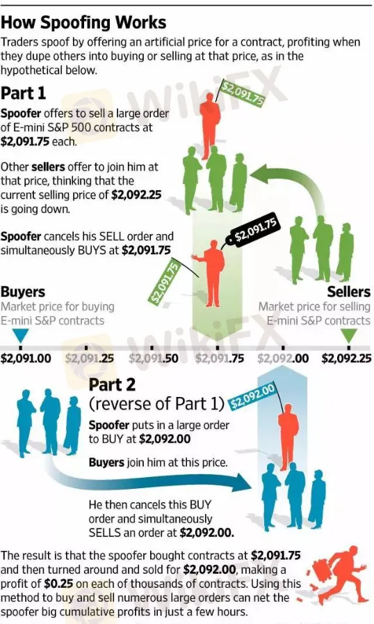 問題在於,薩勞向e-mini市場發出大量交易指令,然後迅速撤銷。芝加哥商品交易所追蹤了他在2008年9月至2009年10月之間的交易後指出,這種手法“似乎對市場的指示性開盤價產生了重大影響”。