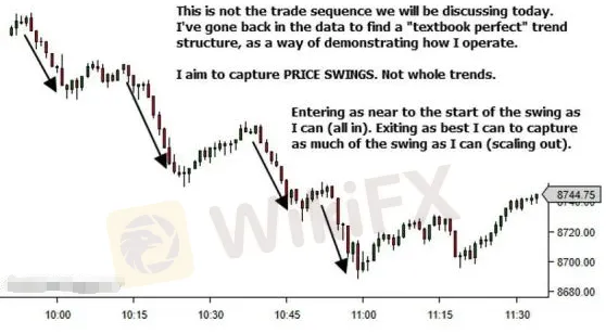 如圖,就是教科書式的事後標準趨勢行情分析。我一般的做法當然是儘量在波段起點進場,而儘量在波段末端退場。但這種案例毫無意義。
