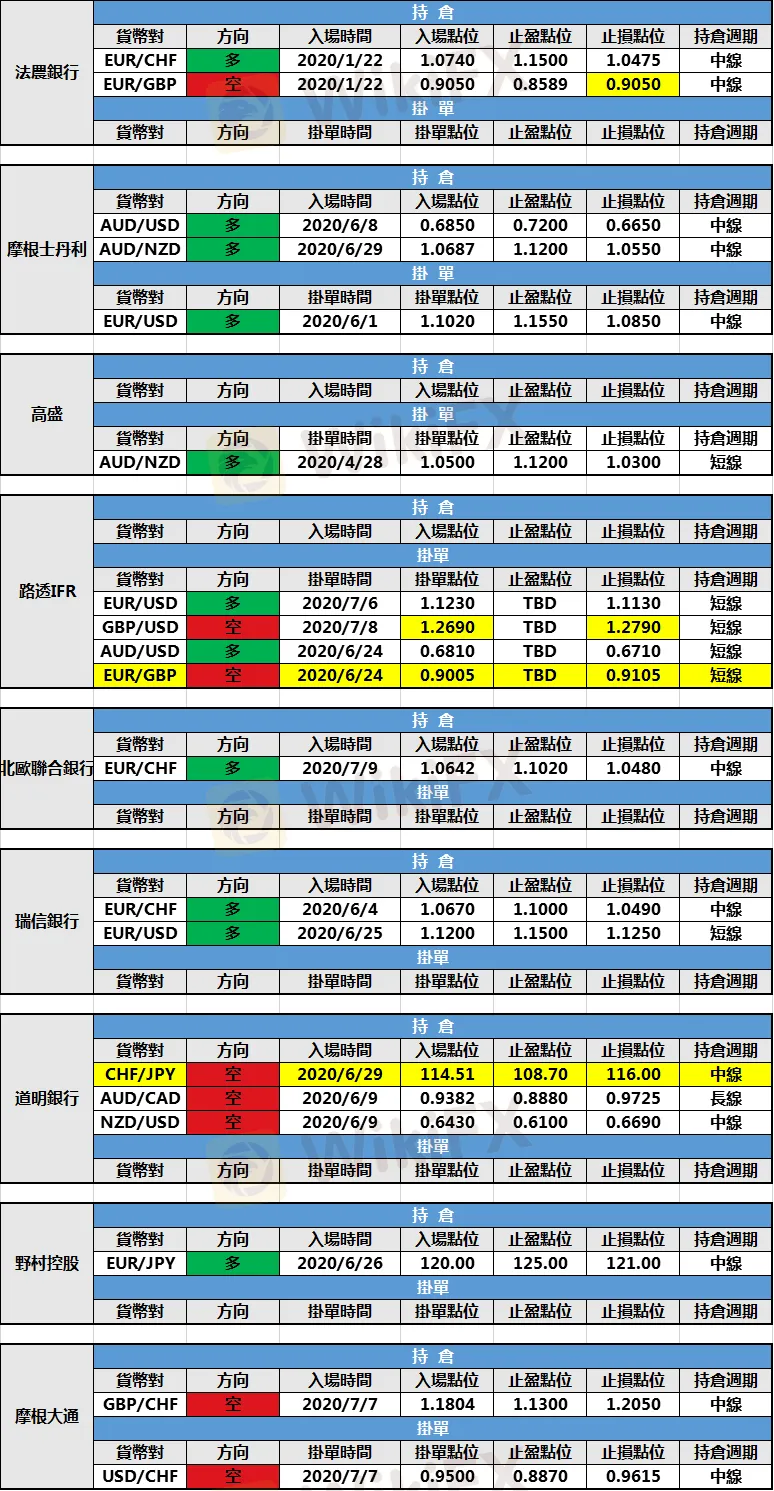 (1)法農銀行修改歐元/英鎊持倉止損點位至0.9050。