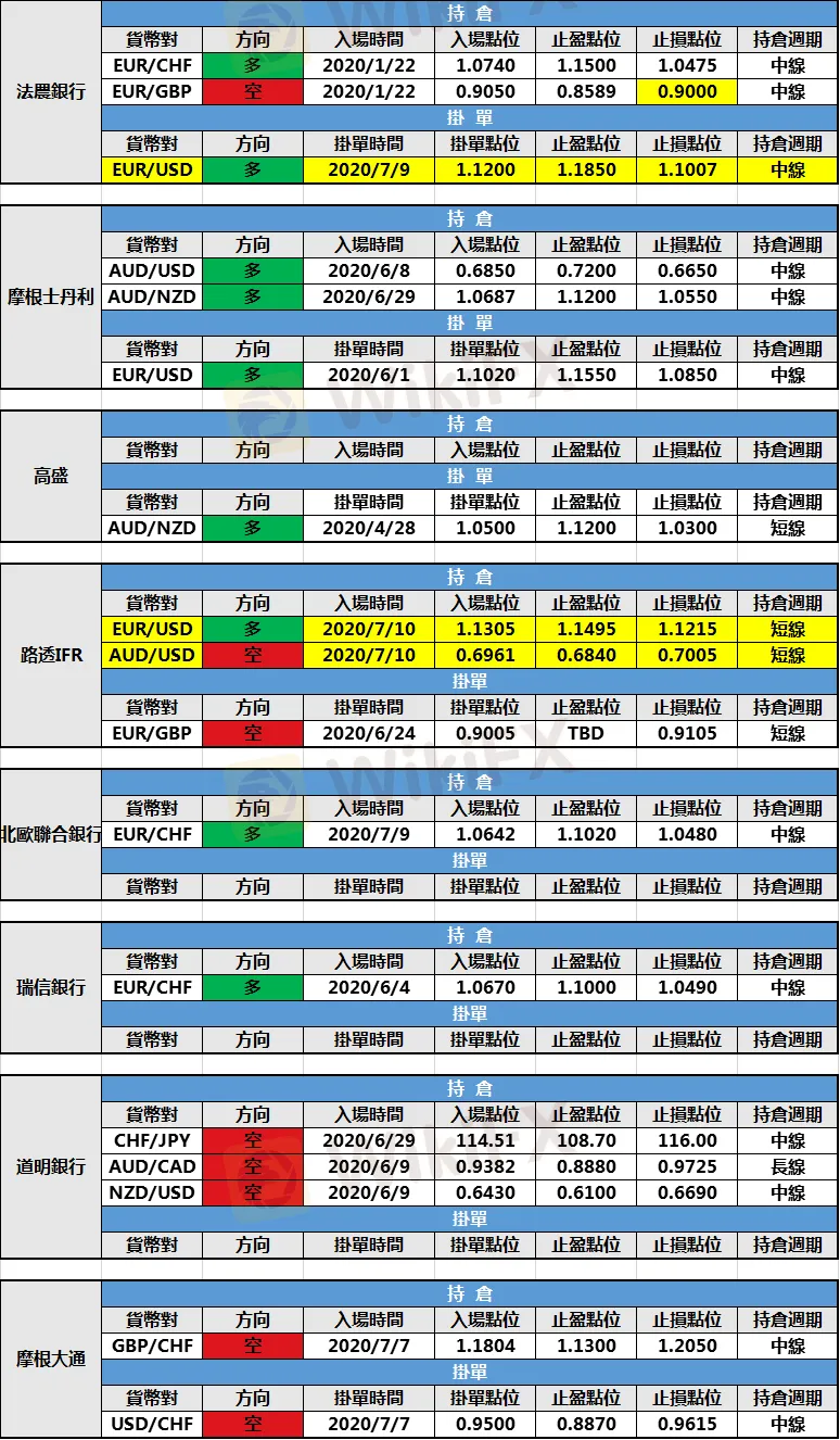 (3)瑞信銀行歐元/美元多頭持倉浮盈提前出局。