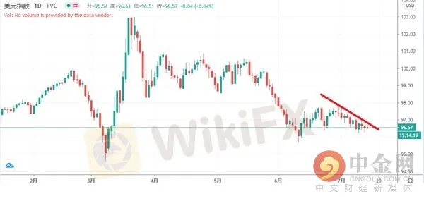 週二(7月14日)亞洲時段,美元指數震盪小幅上漲,現交投於96.57一線。